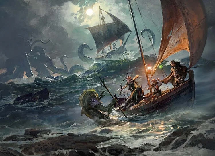 Saltmarsh, a quiet fishing village on the Azure Sea, is plagued by growing evils: smugglers, destructive sahuagin, dark magic animating the drowned, and a cult of a forbidden god spreading from a decaying port. As the village sleeps, these evils grow stronger. DM: Whitney